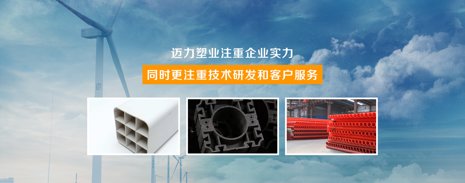 無錫邁力塑業(yè)科技有限公司地處長江三角洲蘇錫常經(jīng)濟發(fā)達區(qū),坐落于江南名鎮(zhèn)--華士鎮(zhèn),緊鄰天下第一村“中國華西村”,緊靠沿江高速華西道口,距上海130公里、南京150公里,地理位置優(yōu)越,交通十分便捷。 本廠創(chuàng)辦于2010年,全廠職工總數(shù)為42名,工程師技術(shù)人員5名,擁有國內(nèi)先進的錐形雙螺桿、單螺桿擠出生產(chǎn)線9條,是專業(yè)生產(chǎn)PE頂管、PVC-U埋地式普通電力電纜管套、PVC-C高壓電纜套管、MPP電纜套管等管材、管件、BWFRP電纜管拉擠纏繞管。 本廠研制生產(chǎn)的埋地電力通訊電...